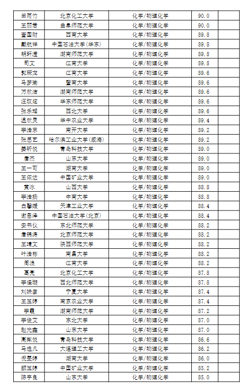 南开大学2022年“魅力化学”夏令营优秀营员名单公示