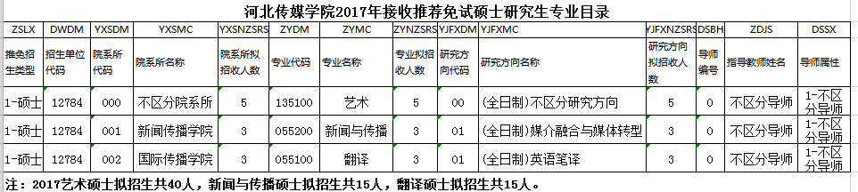 河北传媒学院2017年接收推荐免试硕士研究生专业目录