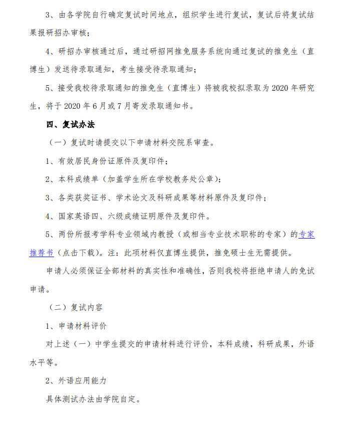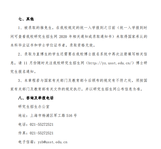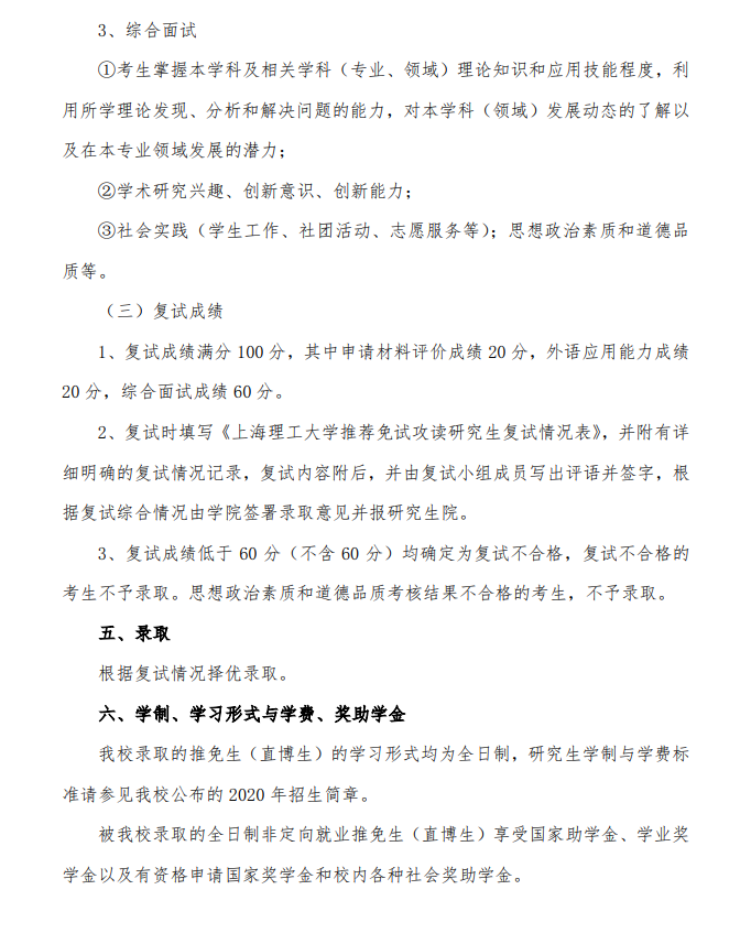 2020年上海理工大学研究生推免办法