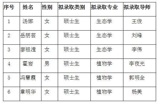 中科院武汉植物园2019年拟录取推免生名单公示及相关通知
