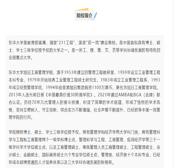 2024年东华大学旭日工商管理学院2024年全国优秀大学生夏令营活动通知 (专业学位硕士项目)