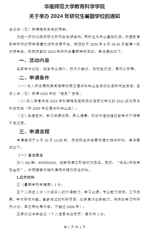 2024年华南师范大学教育科学学院关于举办2024年研究生暑期学校的通知