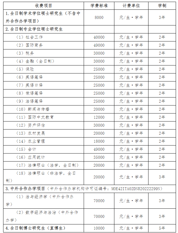 2025年全日制研究生学费收费标准及学制如下: