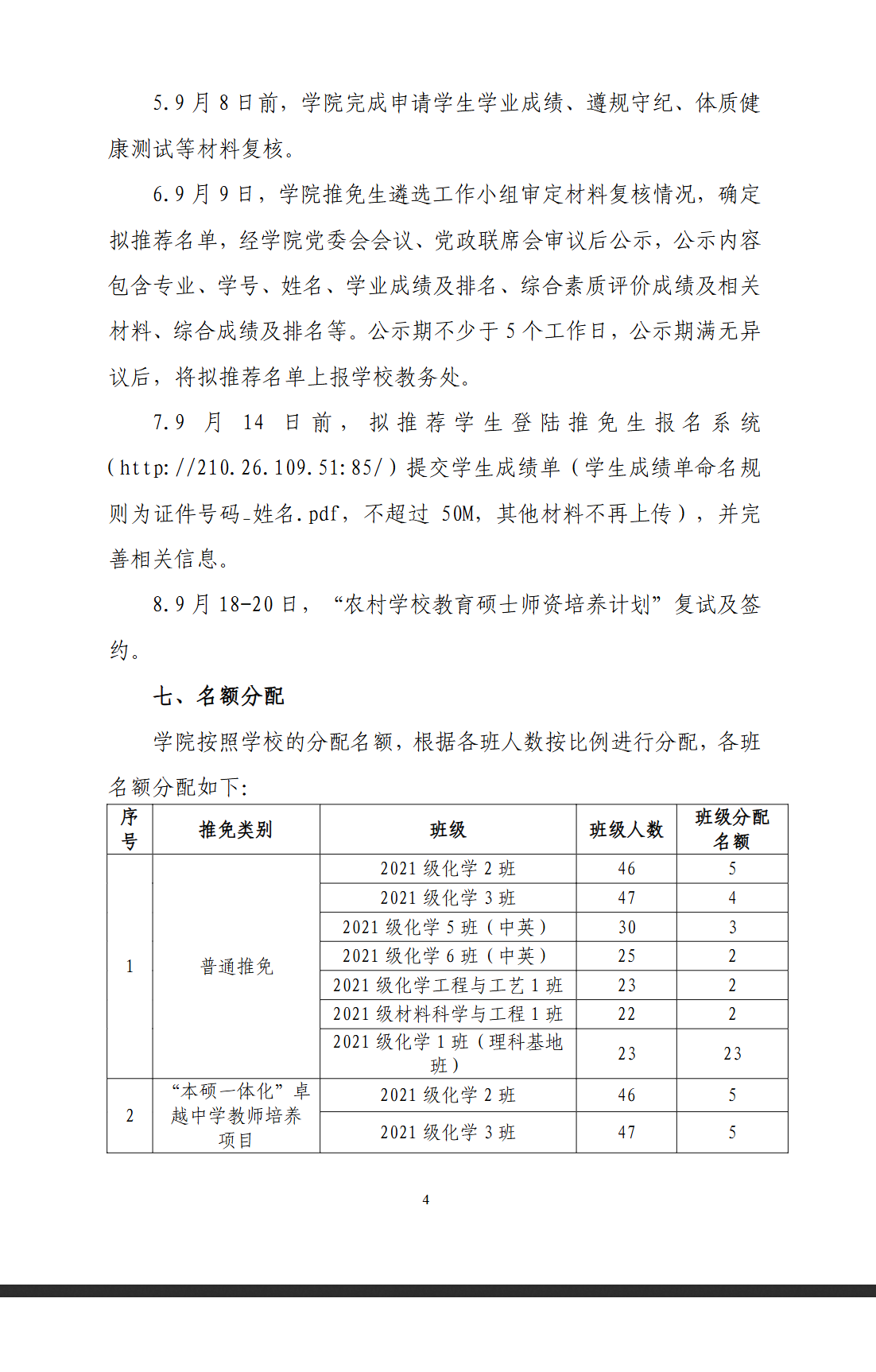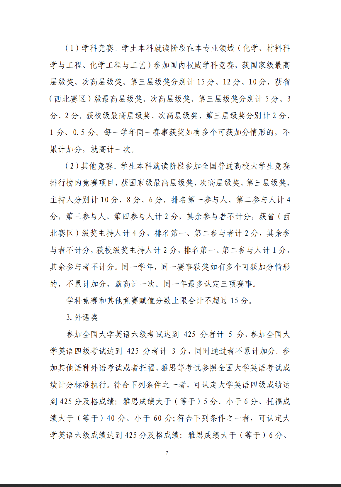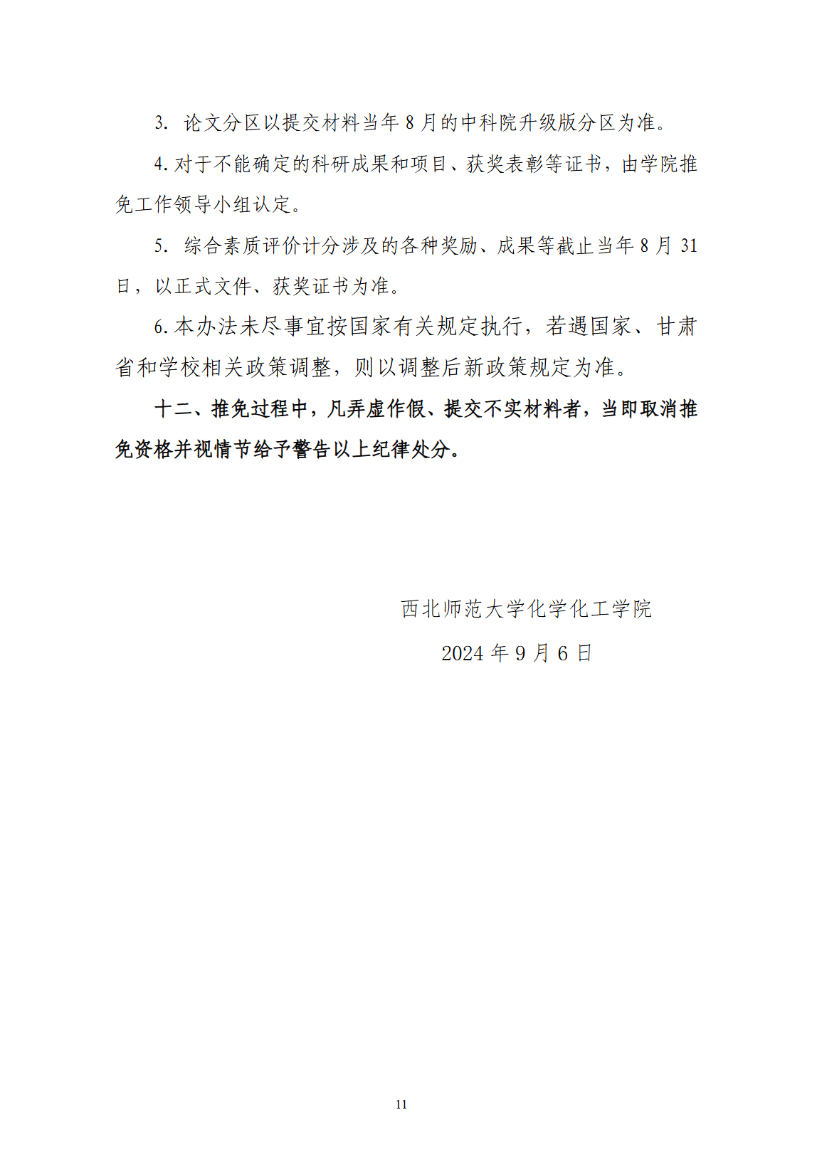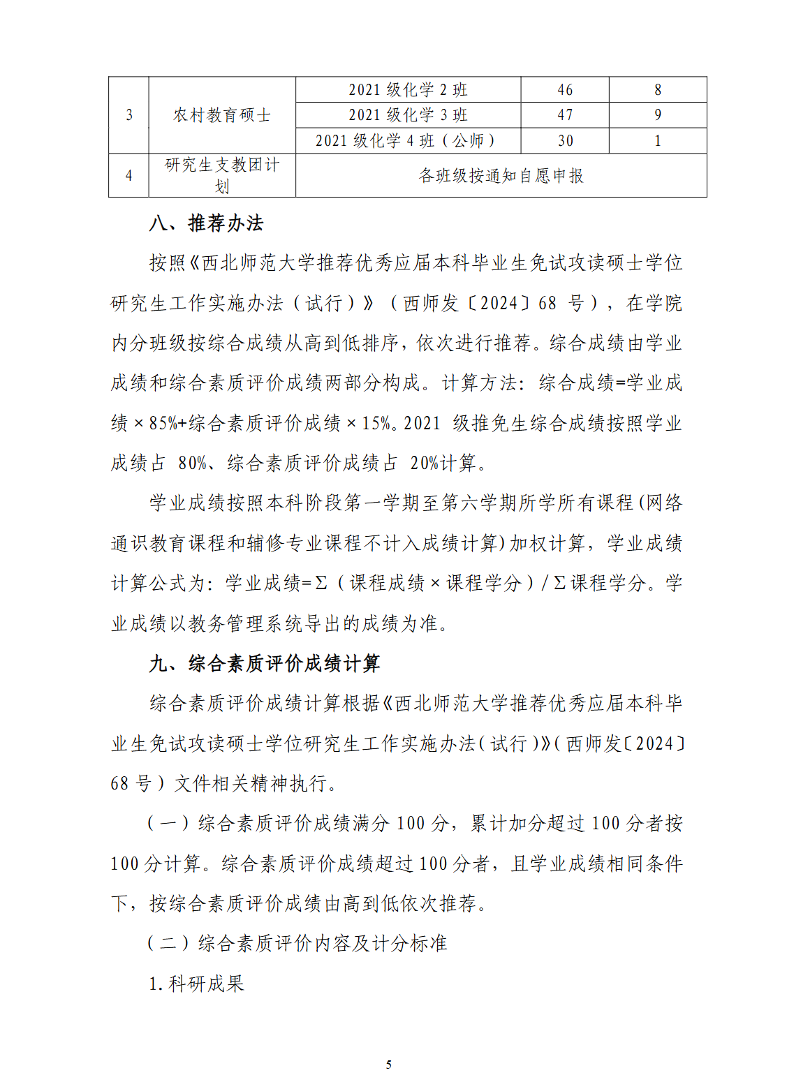 西北师范大学化学化工学院推荐优秀应届本科毕业生免试攻读硕士学位研究生实施细则