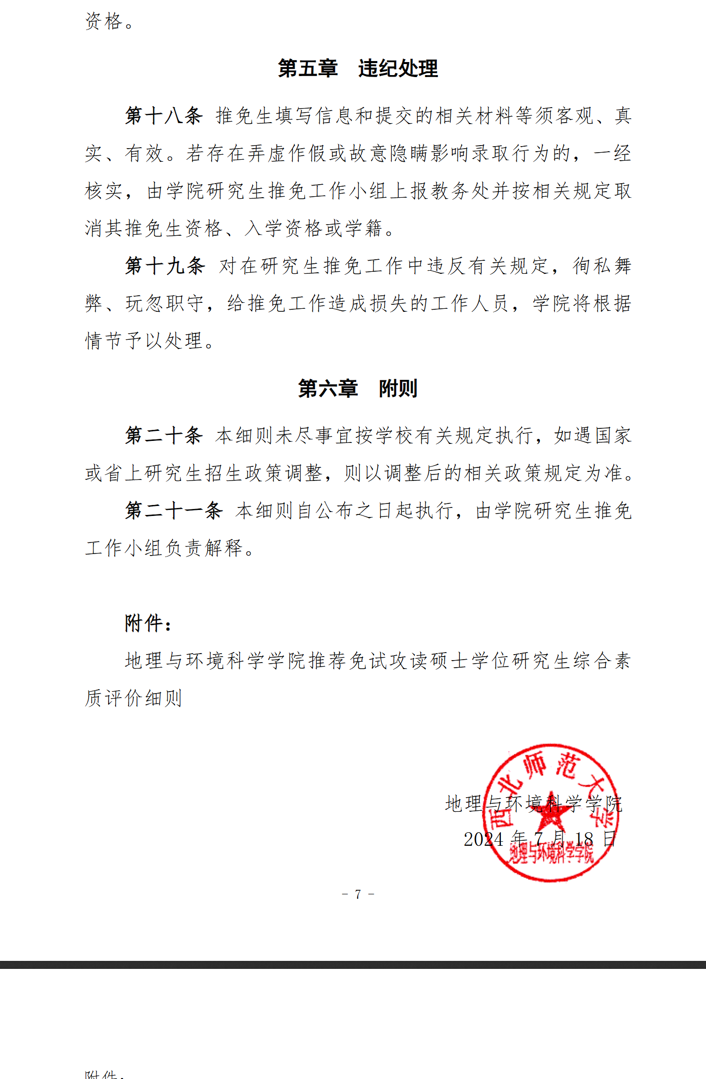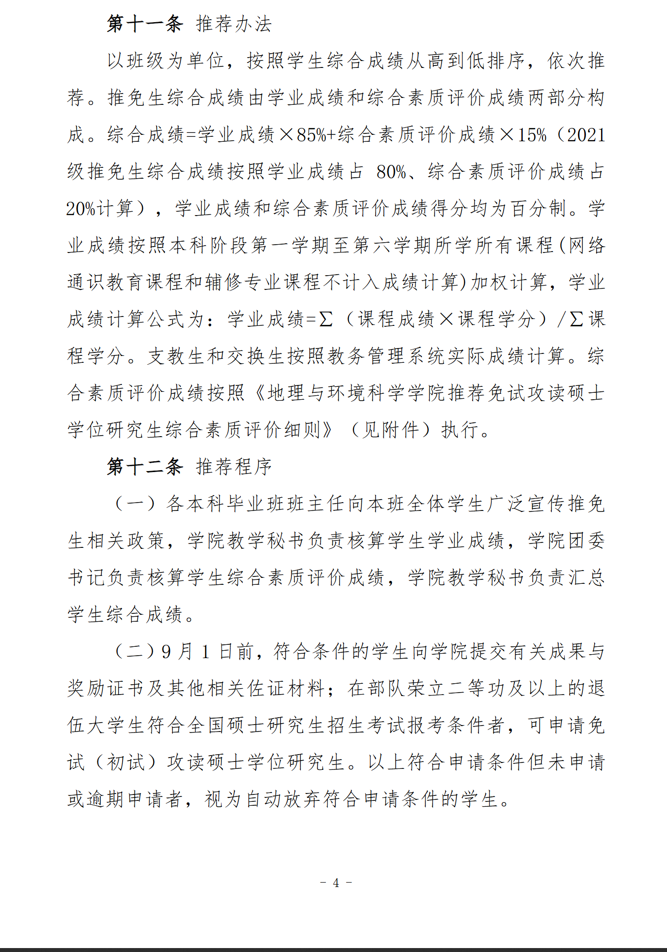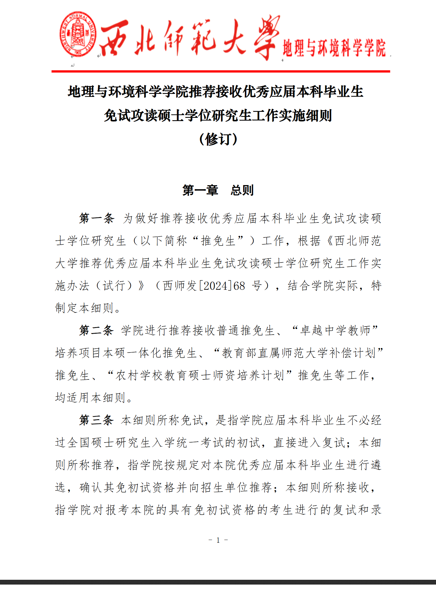 地环学院推荐接收优秀应届本科毕业生免试攻读硕士学位研究生工作实施细则(修订)