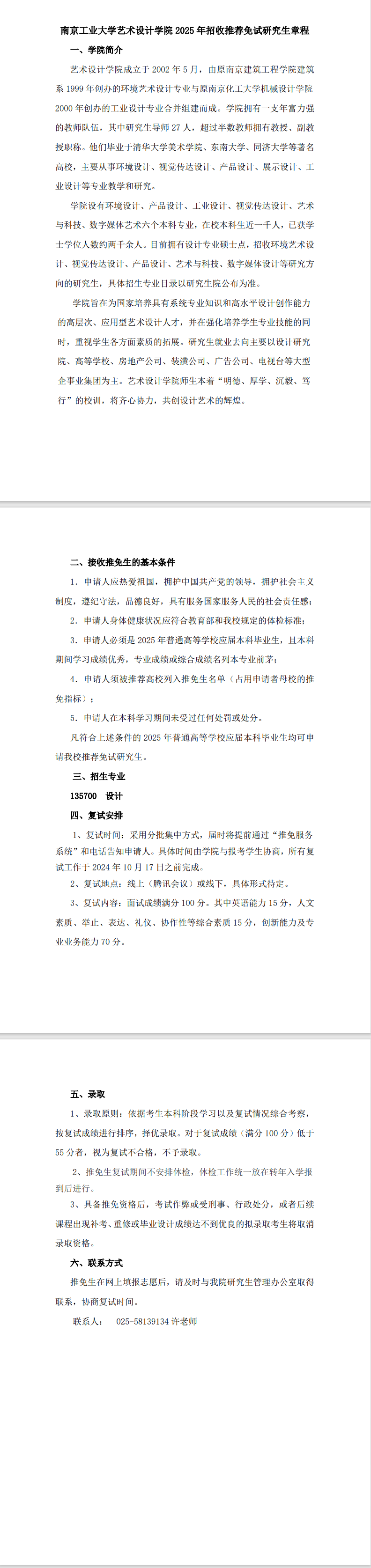 南京工业大学艺术设计学院 2025 年招收推荐免试研究生