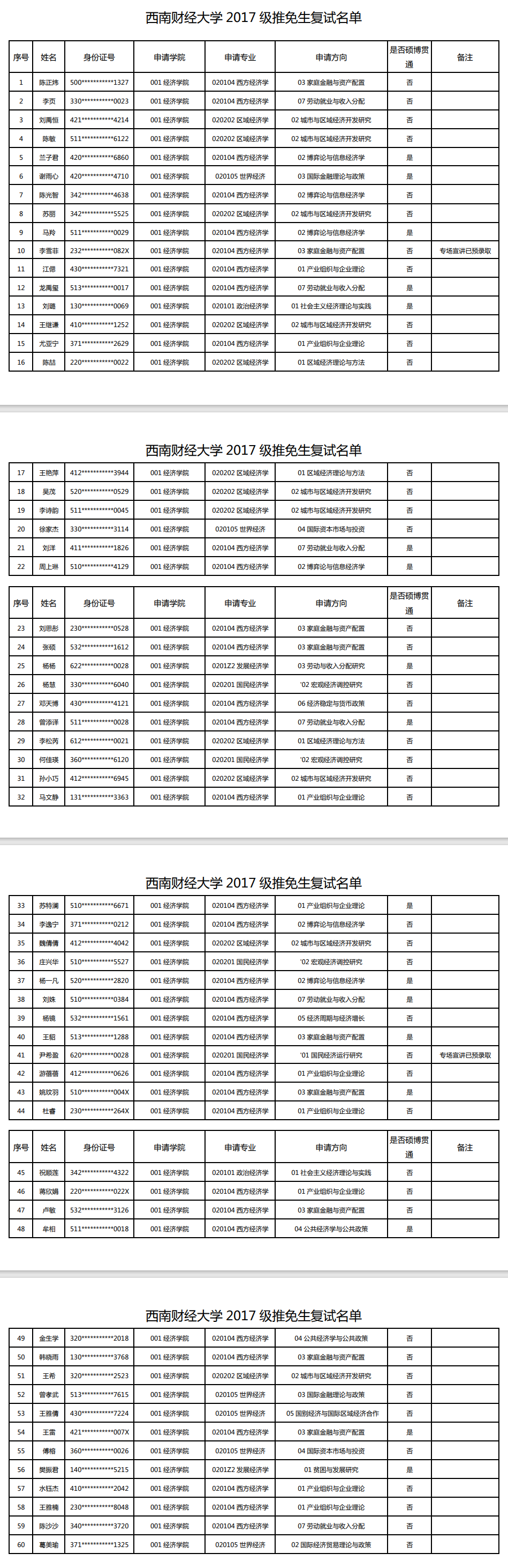 安徽财经大学2022年拟获得免试推荐为硕士研究生资格名单公示