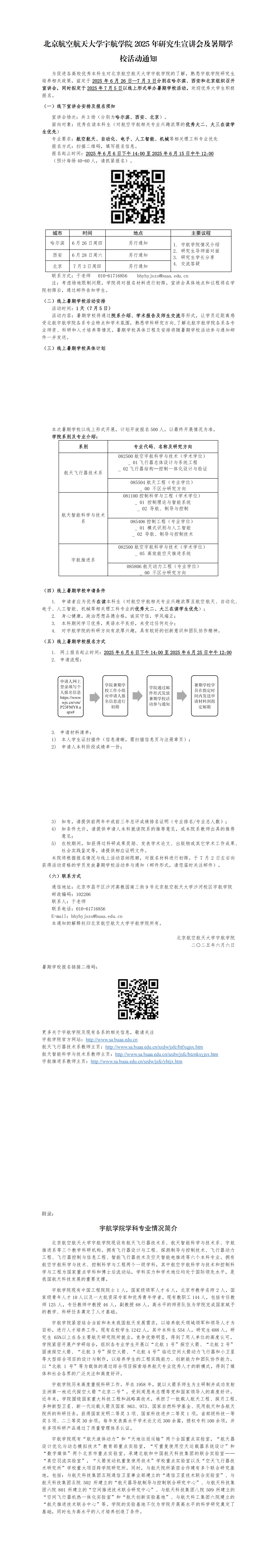 北京航空航天大学宇航学院2025年研究生宣讲会及暑期学校活动通知