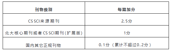 同一篇论文发表于不同等级的学术刊物的不重复加分,只取最高值。不同 等级的论文加分细则如下,本项加分累计均不超过2.5 分。