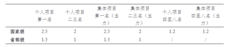 表一:创新创业获奖等级加分表