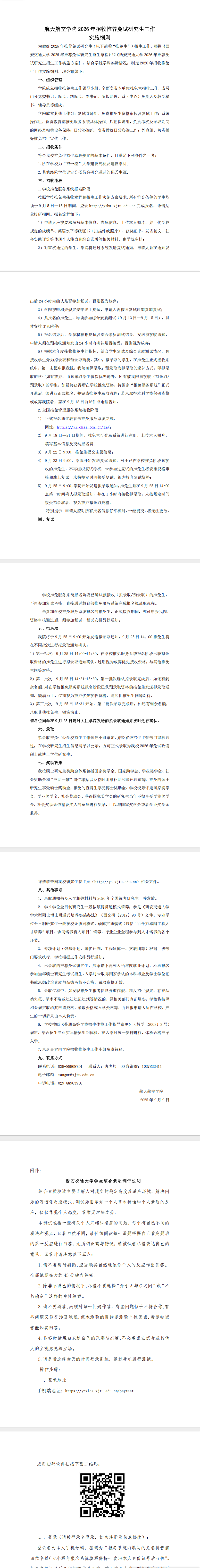 航天航空学院2026年招收推荐免试研究生工作 实施细则