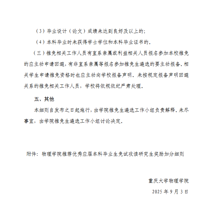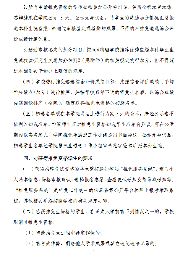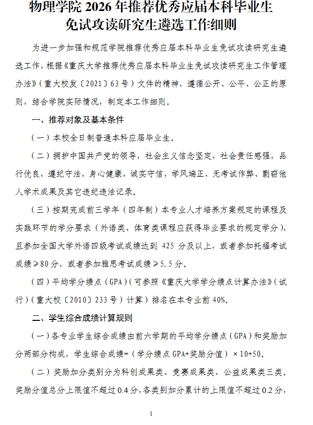 物理学院2026年推荐优秀应届本科毕业生免试攻读研究生遴选工作细则