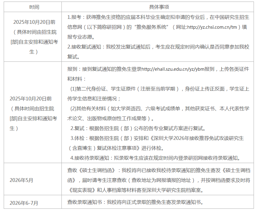 2025年9月10日深圳大学2026年接收推荐免试攻读硕士研究生复试须知