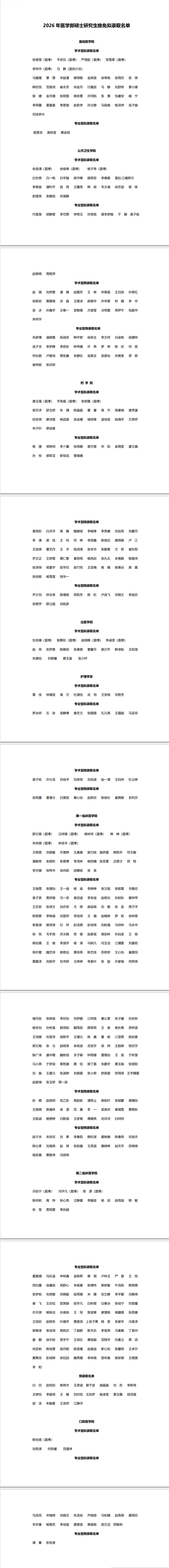 2026年医学部硕士研究生推免拟录取名单