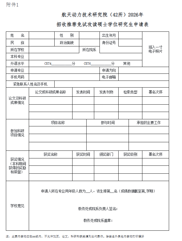 (1)《2026年招收推荐免试攻读硕士学位研究生申请表》(模板见附件1),须加盖所在学校教务部门或院系公章;