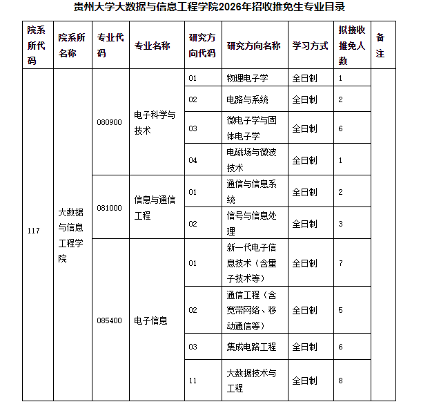 根据学校《关于做好贵州大学2025年接收优秀应届本科毕业生免试攻读硕士学位研究生工作的通知》要求,大数据与信息工程学院接收推免生计划数为41人。