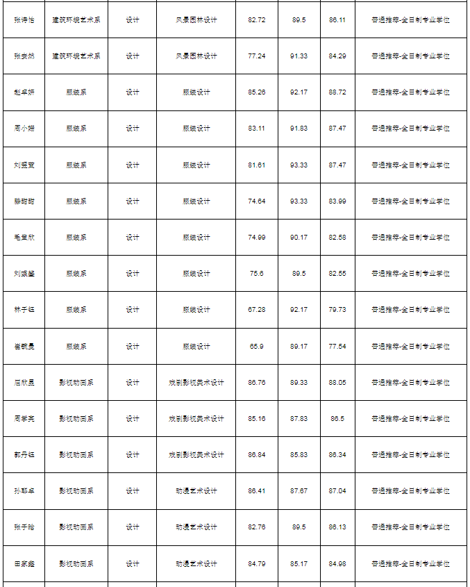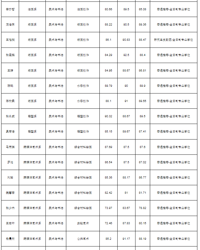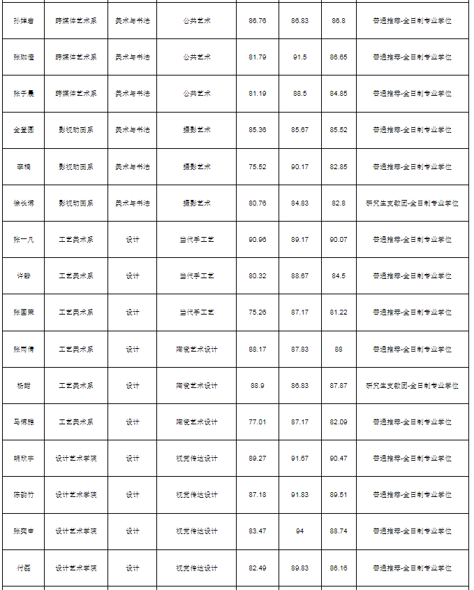 西安美术学院按照《西安美术学院接收优秀应届本科毕业生免试攻读硕士学位研究生工作规定》(西美院发〔2024〕36 号)要求进行推免复试考试,现将推免拟录取名单于9月30日起进行公示,公示期七个工作日,具体名单如下: