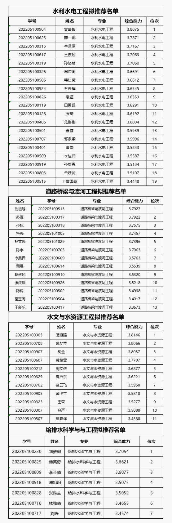 根据教育部推免工作相关文件及会议精神和《郑州大学推荐免试攻读硕士学位研究生工作管理办法》(校教务〔2024〕24号),结合郑州大学《关于做好推荐2026届优秀应届本科毕业生免试攻读硕士学位研究生工作的通知》,按照《郑州大学水利与交通学院推荐优秀应届本科毕业生免试攻读硕士学位研究生工作实施办法(试行)》和《郑州大学水利与交通学院本科生综合能力评价细则》规定,成立水利与交通学院推免工作领导小组和专家组负责2026届优秀应届本科毕业生免试攻读硕士学位研究生推荐工作。经过学生申请、材料审核、专家组面试,最终确定水利与交通学院2026届优秀应届本科毕业生免试攻读硕士学位研究生拟推荐名单,如附件1所示。