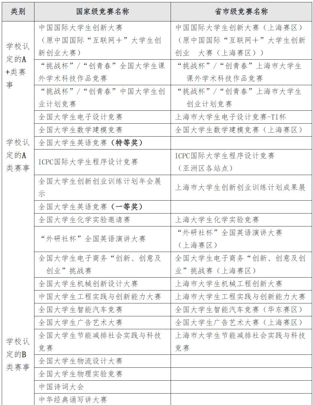 ②非学校认定的A、B类赛事,由各学院根据赛事与专业相关度、含金量等进行评价,每年随院级办法公布给学生。(加分分值不超过B类赛事同级同等次分值,且非A、B类赛事加分总值不超过1.2)。