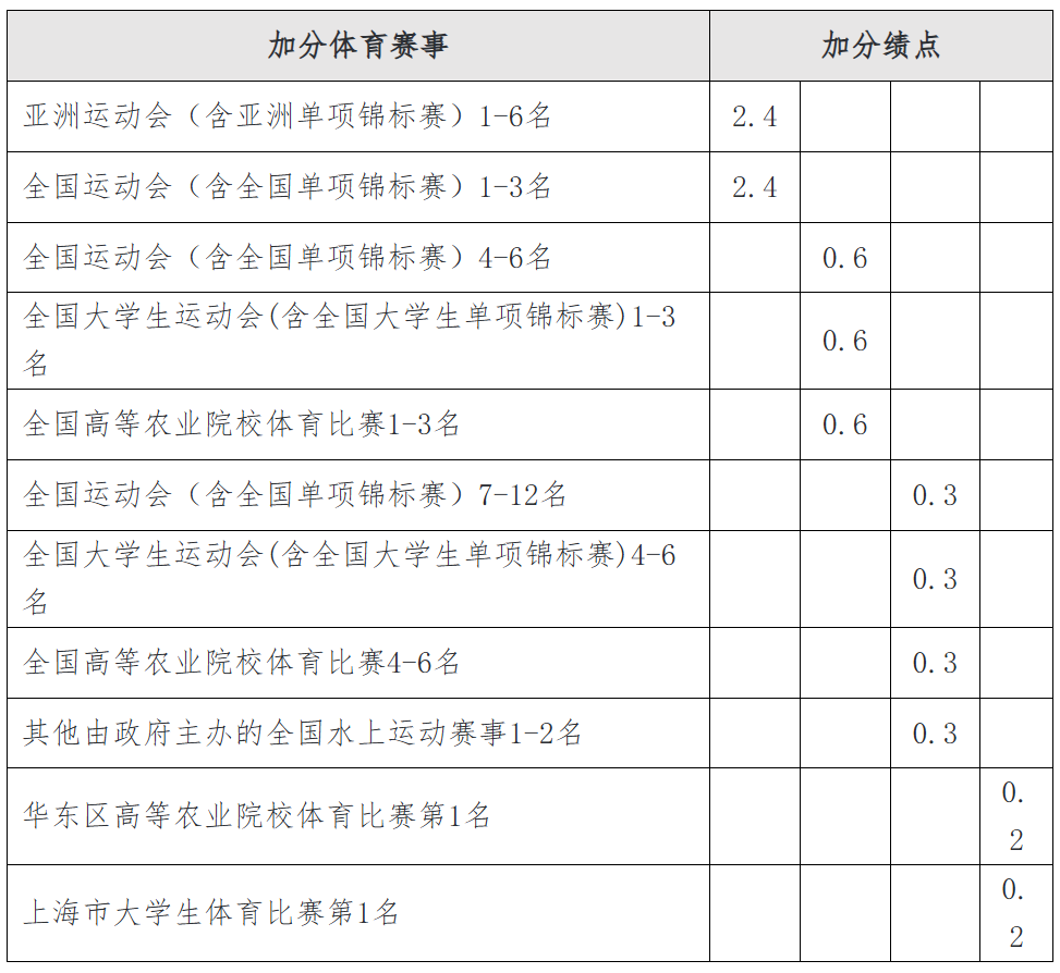 参加市级及以上体育类赛事获奖,每项最高计为2.4绩点。
