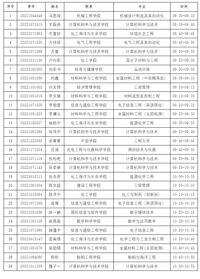 评审时间:2025年9月14日8点30分开始(请在答辩时间前15分钟到场等候,未按时参加视为自动放弃)