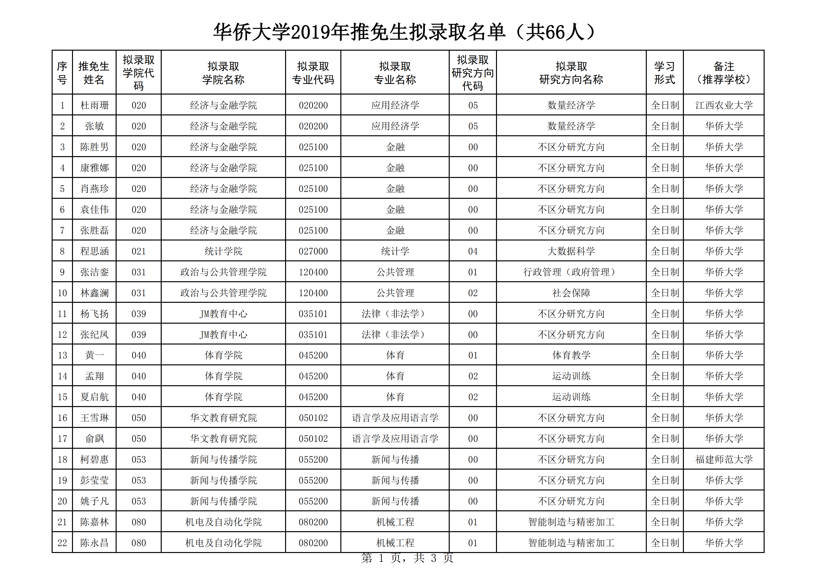 华侨大学2019年推免生拟录取名单(66人).pdf