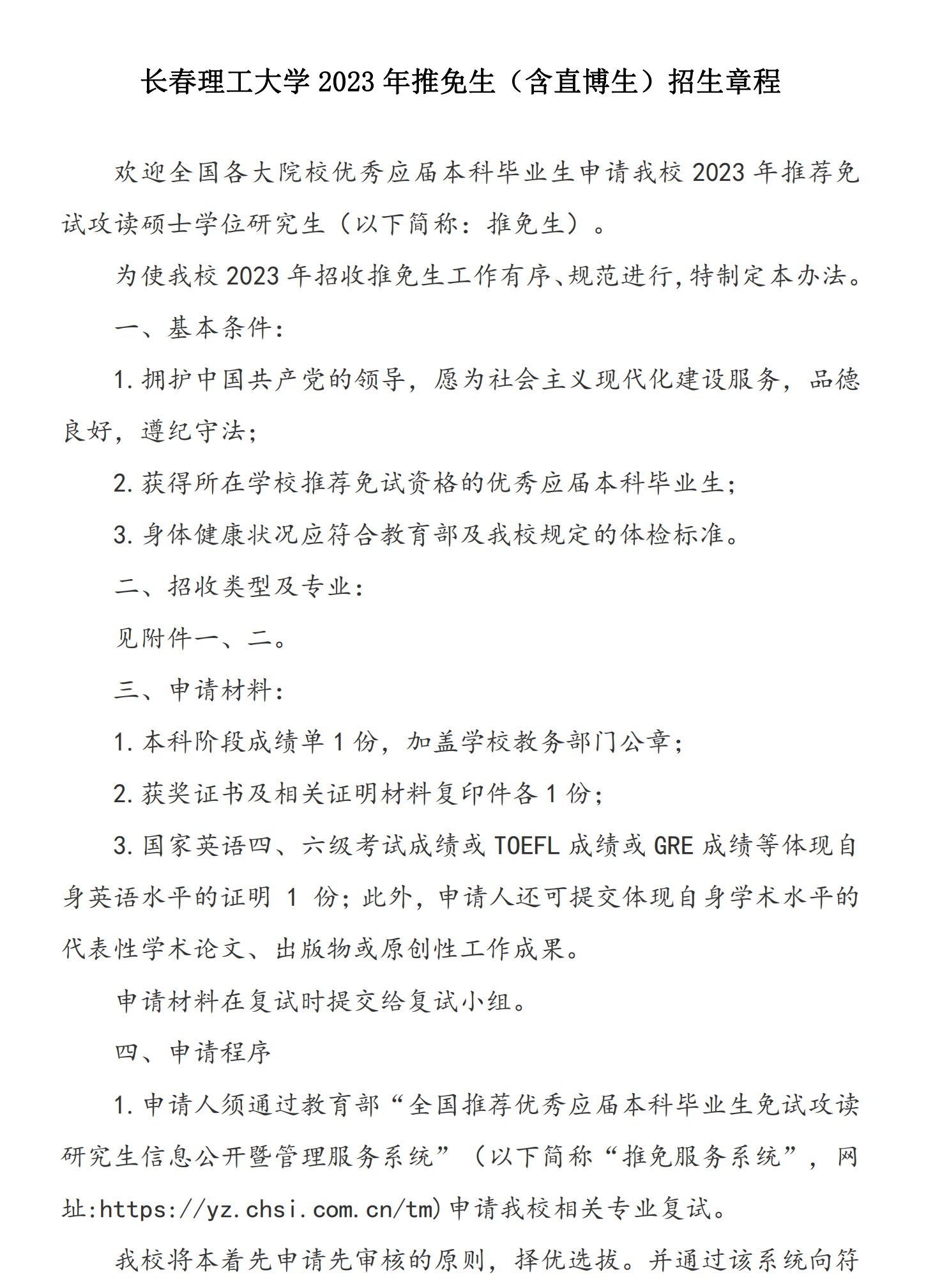 长春理工大学2023年推免生(含直博生)招生章程