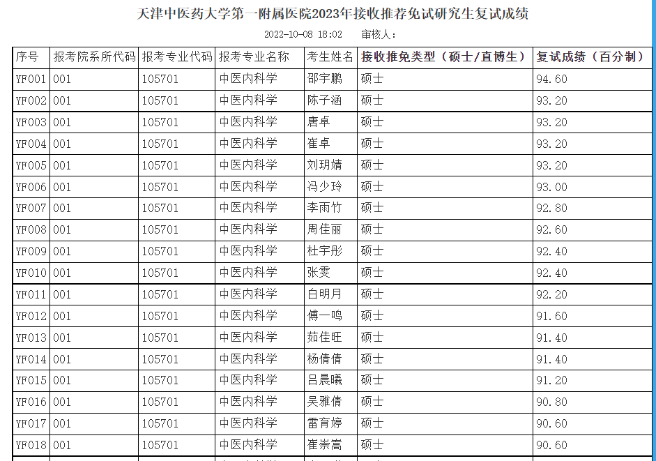 天津中医药大学第一附属医院2023年接收推荐免试研究生复试成绩