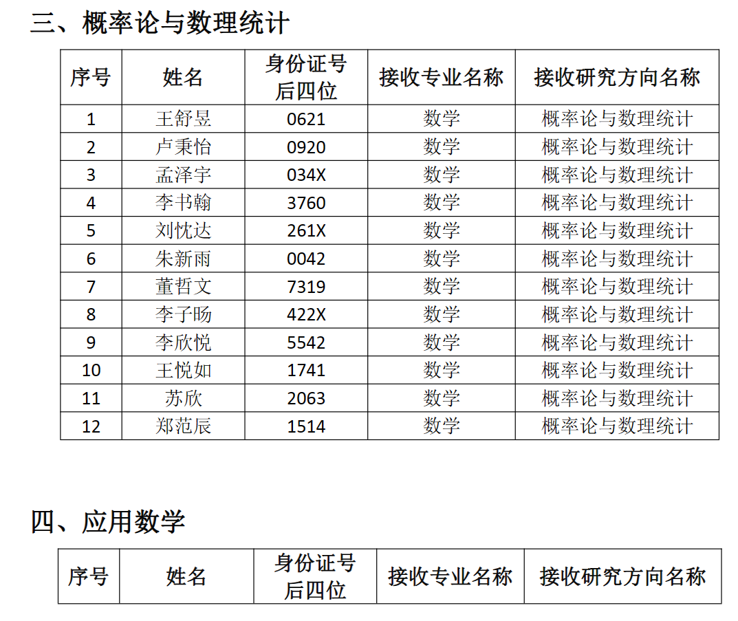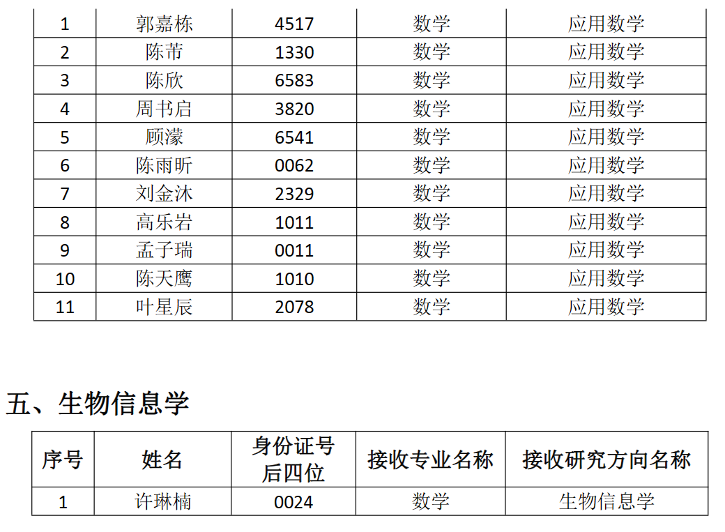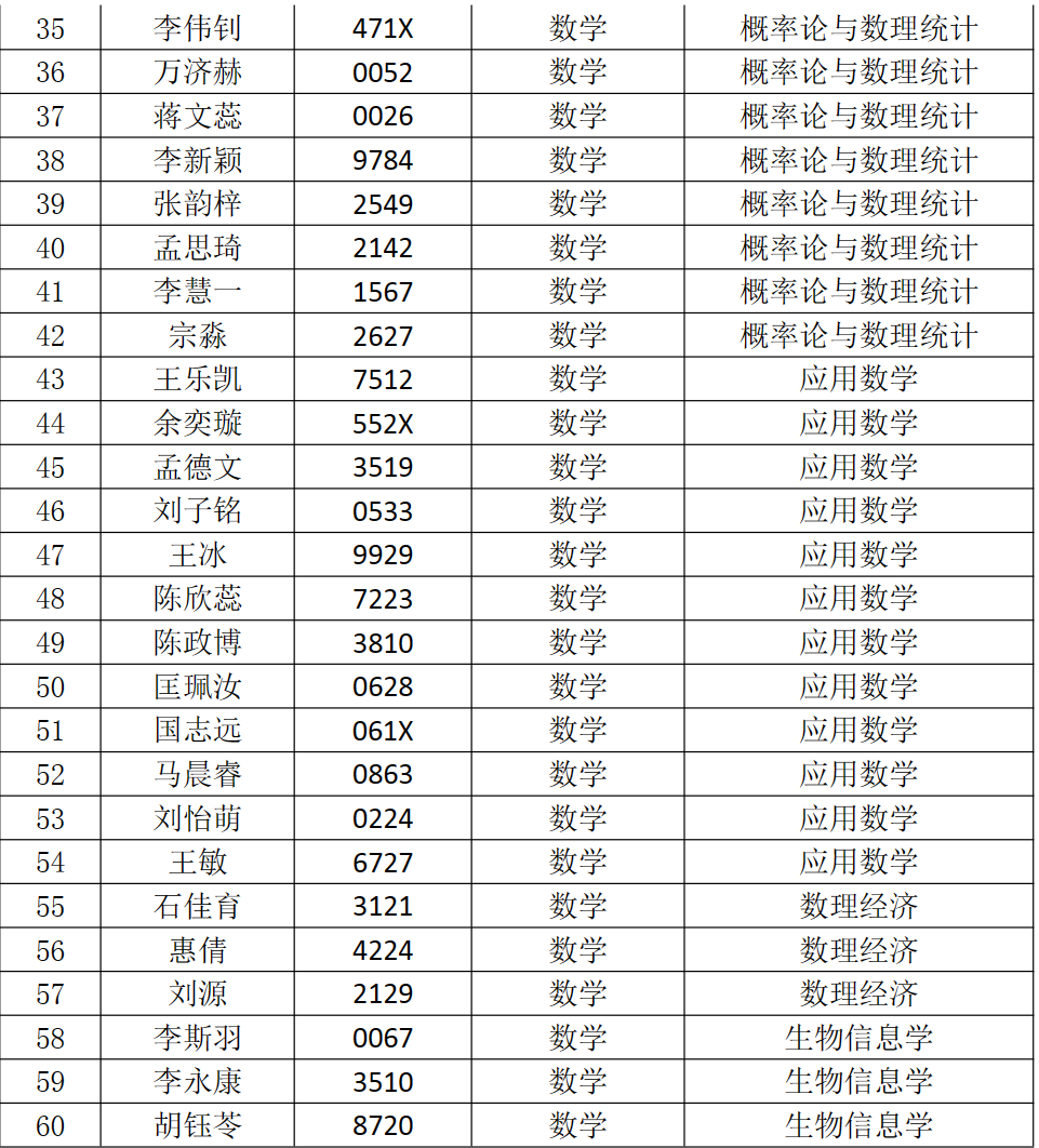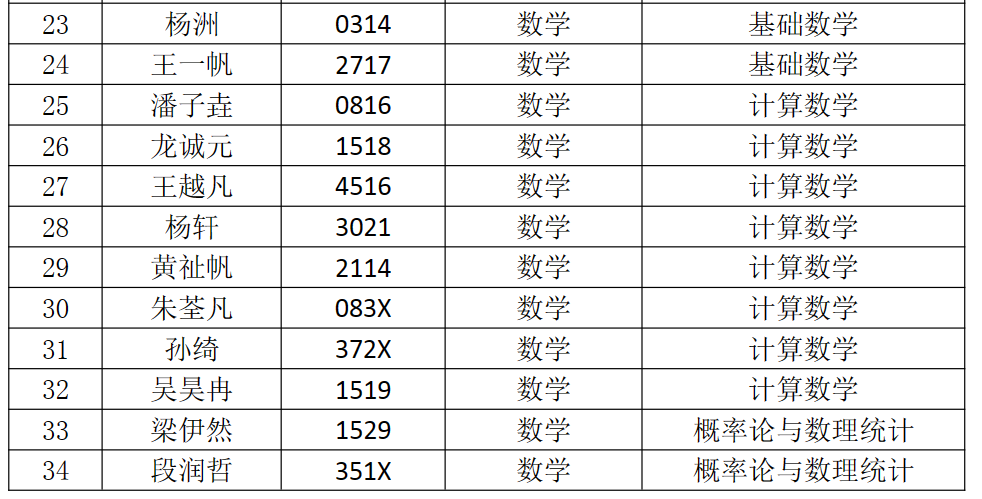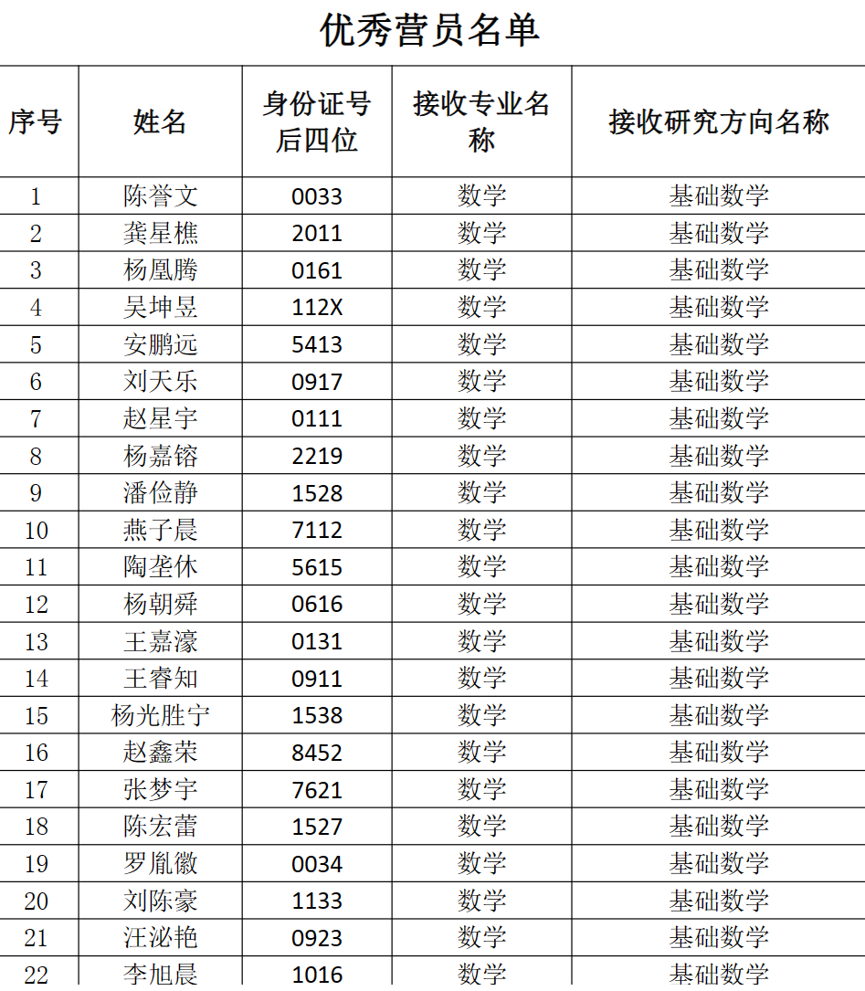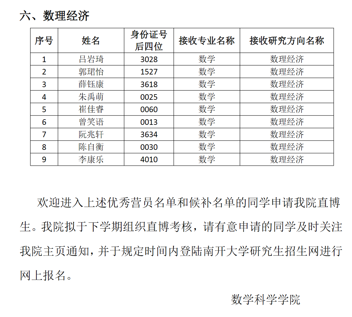 南开大学数学科学学院2023年优秀大学生夏令营优秀营员名单及候补名单