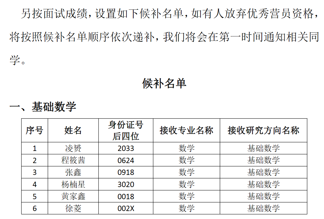 链接:数学科学学院2023年夏令营优秀营员名单及候补名单 (nankai.edu.cn)