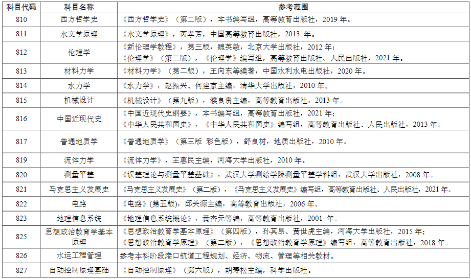 河海大学2023年硕士研究生招生考试自命题科目参考范