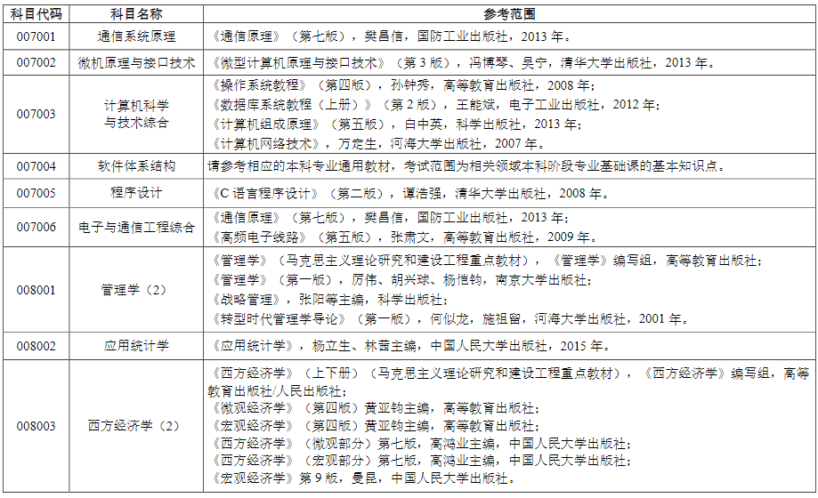 中国航天科工集团第三研究院2023年硕士研究生招生考试参考书目