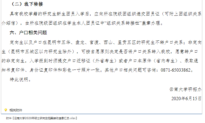 云南中医药大学关于2023级研究生新生党团组织关系转接、户口迁移、档案接收地址相关事宜的通知