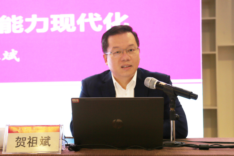 贺祖斌在题为《大学治理体系和治理能力现代化》的报告中,以精辟的理论阐释、详实的数据分析和具有前瞻性的发展展望对高等教育治理体系、高等教育治理现代化以及广西高等教育治理的现状和问题进行了透彻讲解,并对我校不断深化和健全高质量发展“十大制度体系”的实践案例作了详细介绍,同兄弟院校分享高等教育治理中的实践成果。