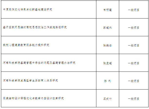 我校于2020年11月批准立项河南科技学院“十四五”规划调研课题16项,其中重点项目5项,一般项目11项,结项时间为2021年3月20日,请各项目负责人按照结项要求准备结项材料,按时结项。