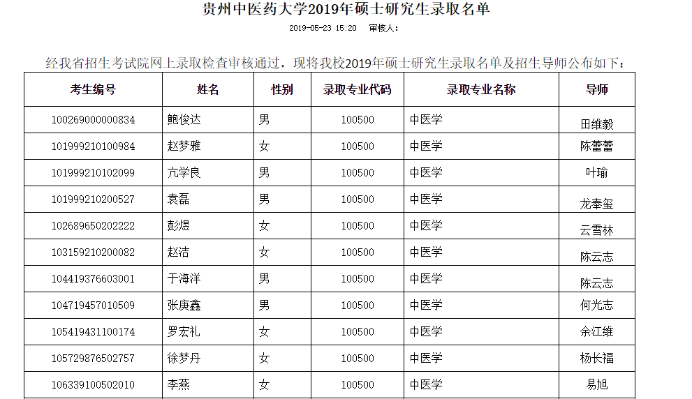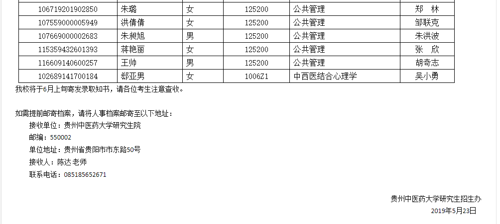 甘肃中医药大学2023年硕士研究生招生拟录取名单公示
