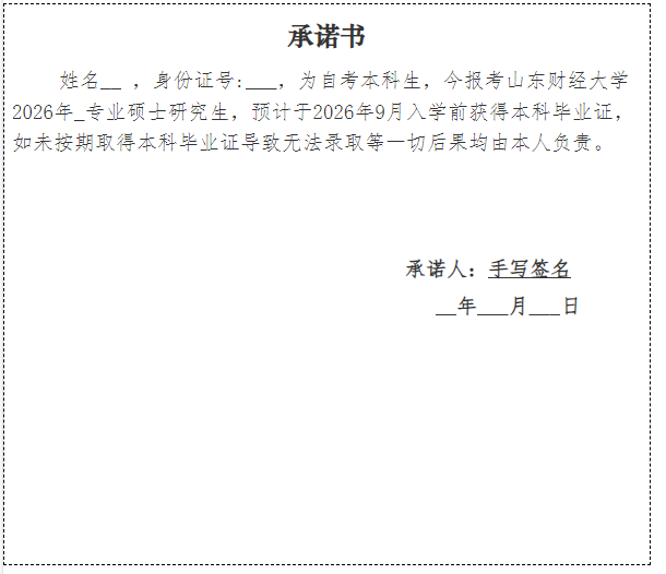 3.尚未获得毕业证的自考本科生在学信网上无学籍学历信息,无法查询,且在报考时会提示校验信息错误,遇到上述情况考生不用提交学历证书电子注册备案表,但需要提供一份承诺书(附件1),模板如下,打印后签名、拍照上传。