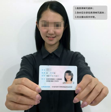 4.确保身份证上的所有信息清晰可见、完整(没有被遮挡或者被手指捏盖住);