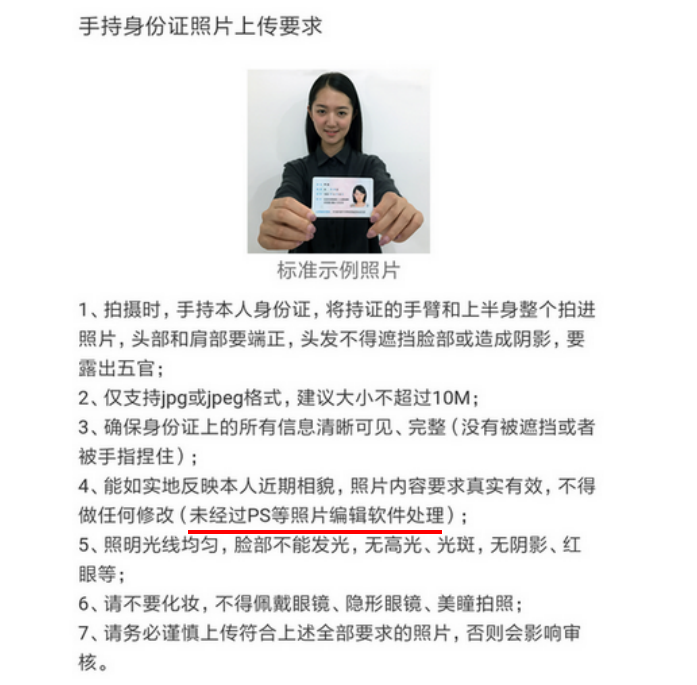 2、本人手持身份证照片。