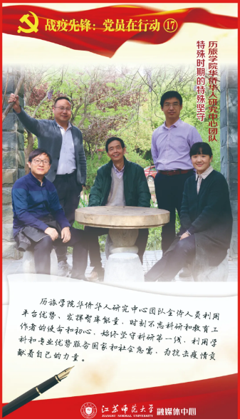 “我们这个中心依托于国务院侨办侨务理论研究江苏基地平台,承担着为侨务部门提供决策咨询的重要任务。‘凝聚侨心、发挥侨力、维护侨益’是我们的科研目标。特殊时期,我们团队积极撰写有关华侨华人的咨询报告,为侨务工作和防疫工作建言献策,用我们的专业知识为抗疫做点贡献。” 华侨华人研究中心团队带头人张秋生教授这样说。