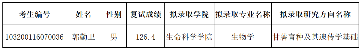 近期1名博士研究生考生(考生编号103200116070032)因个人原因放弃我校2020年博士研究生拟录取资格。根据导师招生计划,经学院研招工作领导小组研究并报校研究生招生工作领导小组审定,按复试成绩递补1名考生进入拟录取名单。
