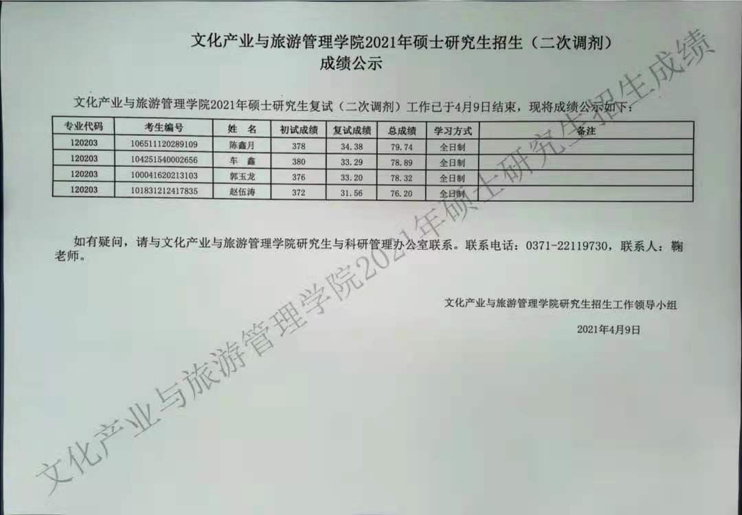 文化产业与旅游管理学院2021年硕士研究生招生(二次调剂)成绩公示