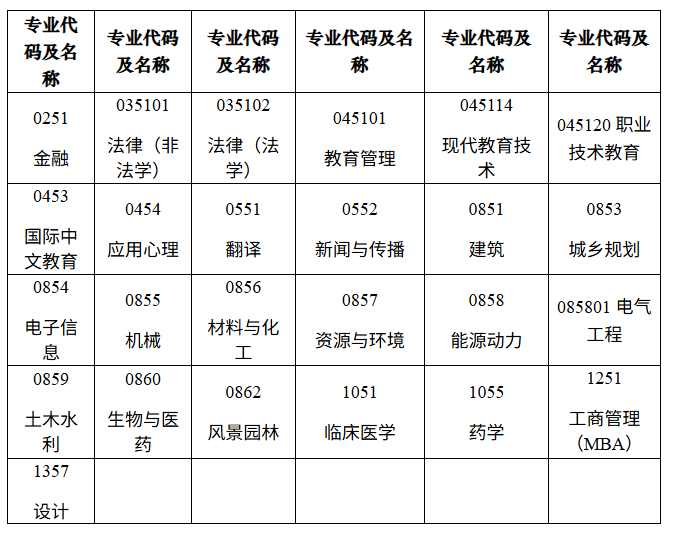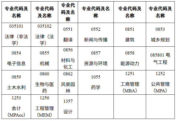 2.我校2026年招收非全日制专业学位研究生类别如下: