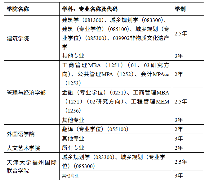 除上表所列学院及专业外,其他学院的所有专业学制均为3年。新生入学后双向选择指导教师。