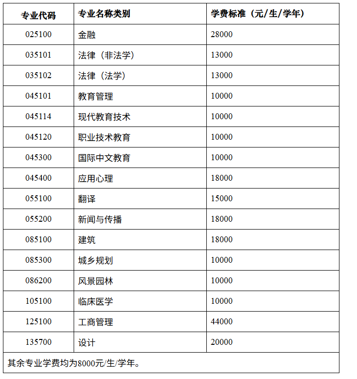 2026级非全日制硕士研究生收费标准如下: