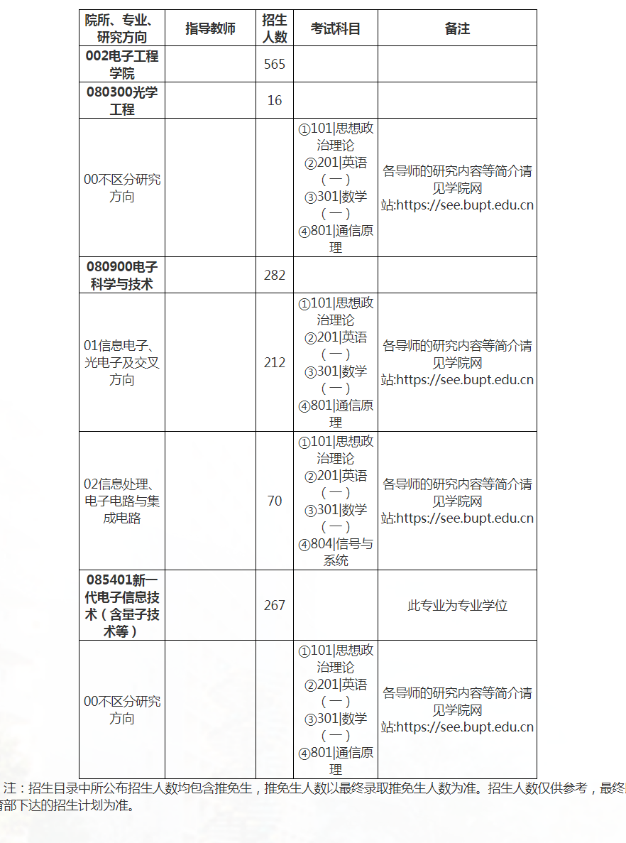 北京邮电大学 2026年电子工程学院硕士专业目录