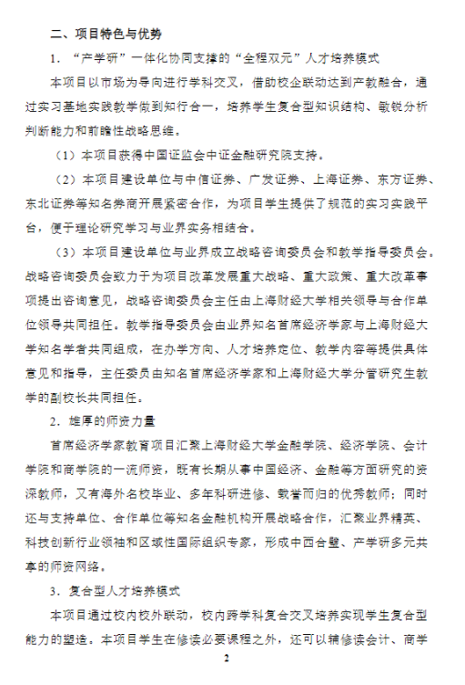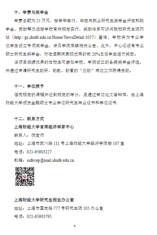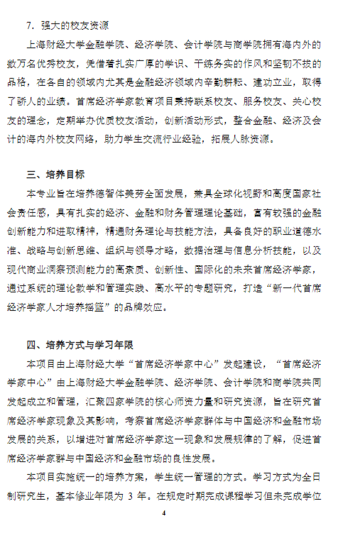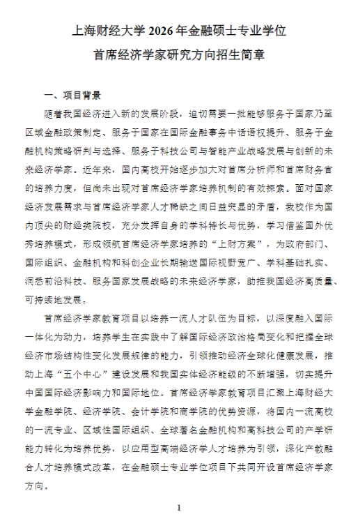 上海财经大学2026年金融硕士专业学位首席经济学家研究方向招生简章