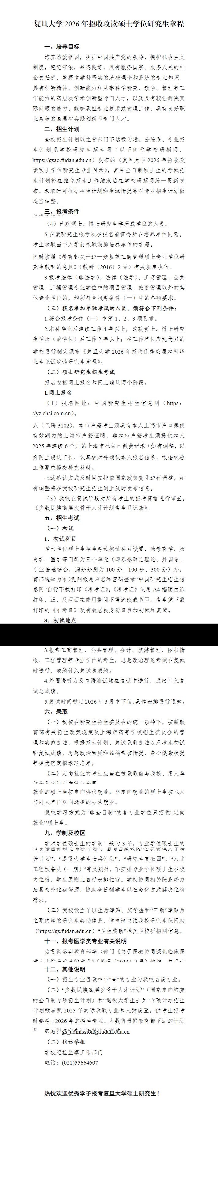 复旦大学2021年招收攻读硕士学位研究生专业目录