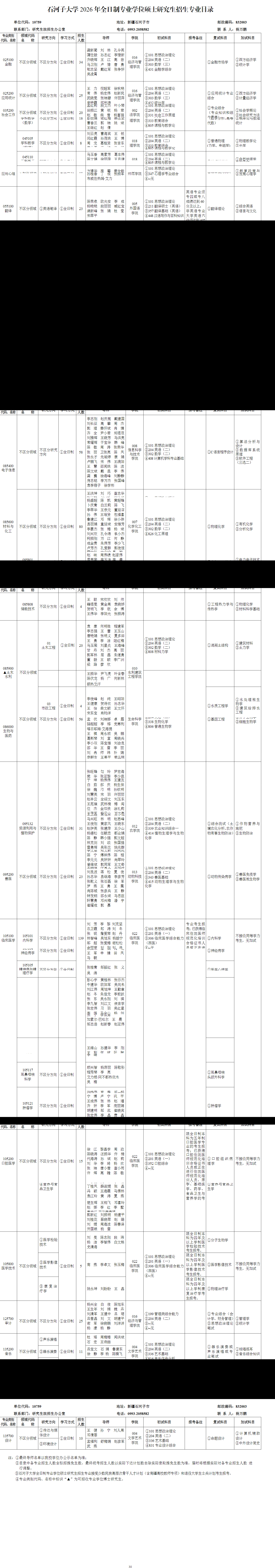 石河子大学2026年全日制专业学位硕士研究生招生专业目录