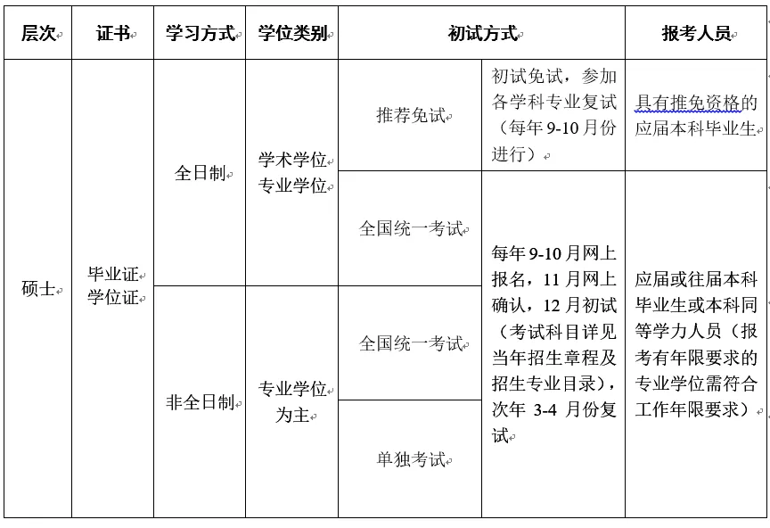 全国硕士研究生招生考试初试方式分为全国统一考试、单独考试以及推荐免试。